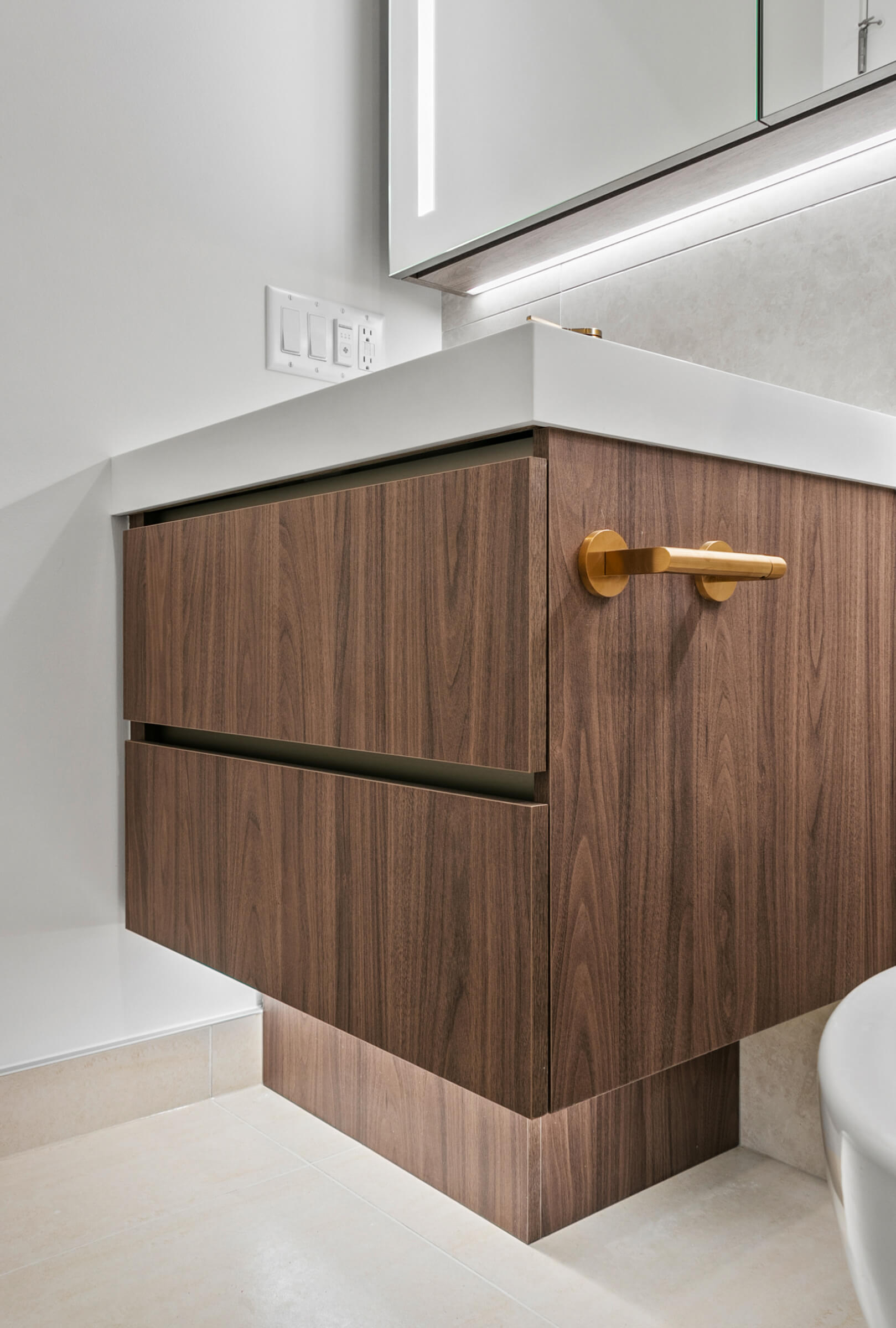 Custom-built vanity to fit tight space